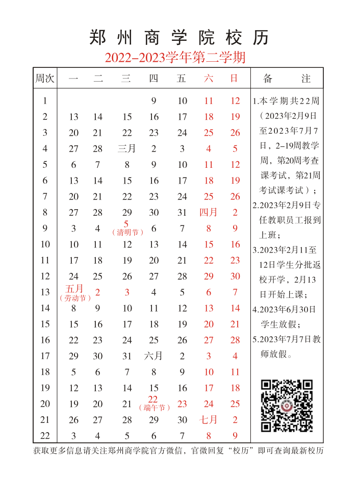 pg电子官方网站2022-2023学年第二学期校历