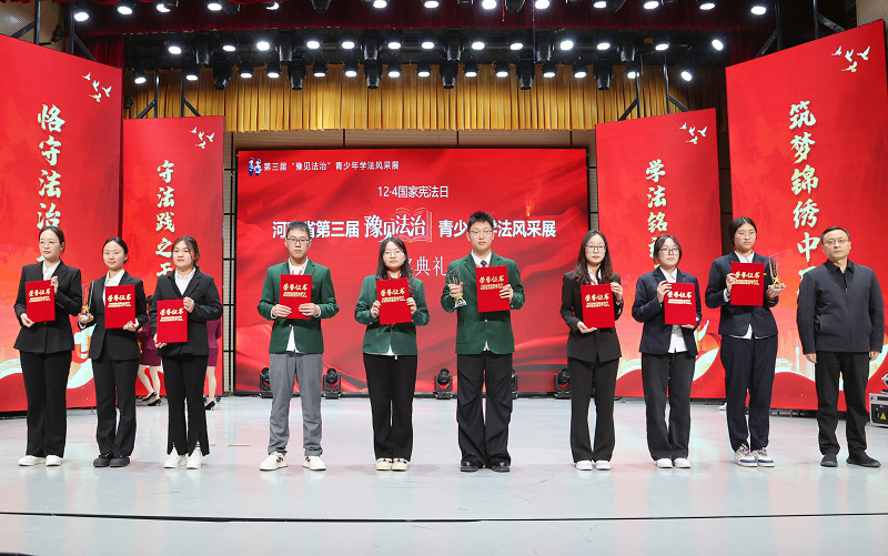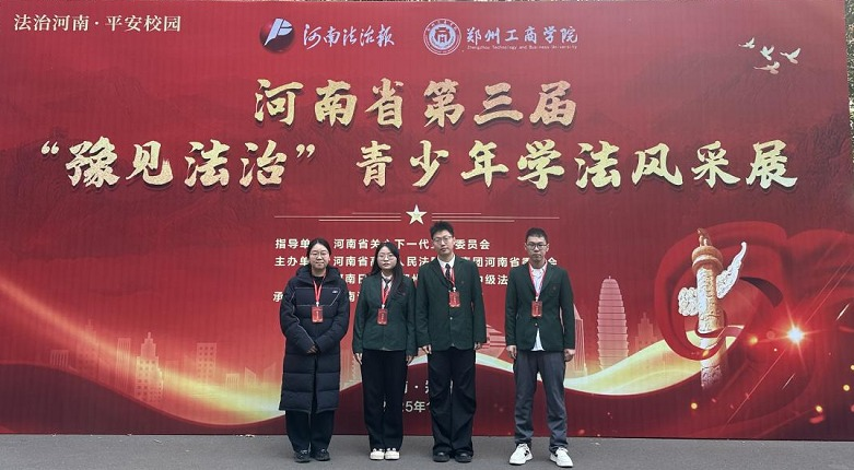 12月4日,河南省第三届“豫见法治”青少年学法风采展总决赛暨颁奖典礼在郑州工商学院举行。本次活动由省关心下一代工作委员会指导,省法院、共青团河南省委、河南日报社、郑州铁路运输中级法院联合主办,河南法治报社与郑州工商学院共同承办。活动分网络竞赛、现场决赛两个环节开展,pg电子官网知识产权专业乔千和、许艳艳、冯军豪3名学生参赛。经过激烈角逐,pg电子官网代表队荣获“三等奖”,pg电子官网程果老师荣获“优秀指导老师”。