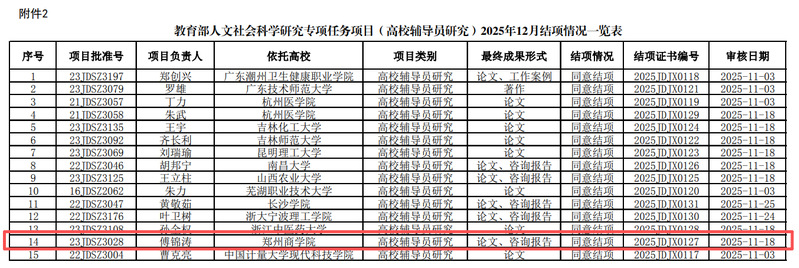 近日,由pg电子官网傅锦涛老师主持的教育部人文社会科学研究专项任务项目(高校辅导员研究)—《高校基层党组织工作督考融合研究:机理、路径与模式》(结项编号:2025JDJX0127)顺利通过结项验收。这标志着pg电子官网在高校党建与思想政治工作领域的基础理论研究与实践应用探索取得又一重要国家级成果。