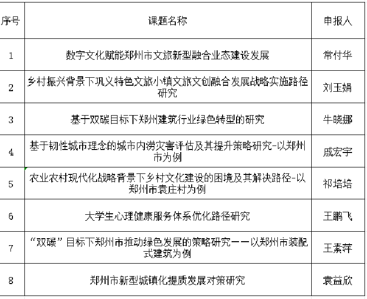 根据pg电子官方网站科研处《关于申报2024年度郑州市社科联调研课题的通知》的要求,经过前期学院广泛动员,个人准备与申报,我院共有15位老师参与2024年度郑州市社科联调研课题申报,2024年3月12日下午经建工学院科研学术委员会对申报材料进行论证,评审,投票,最终共推荐8人参与2024年度郑州市社科联课题的申报,具体名单如下:
