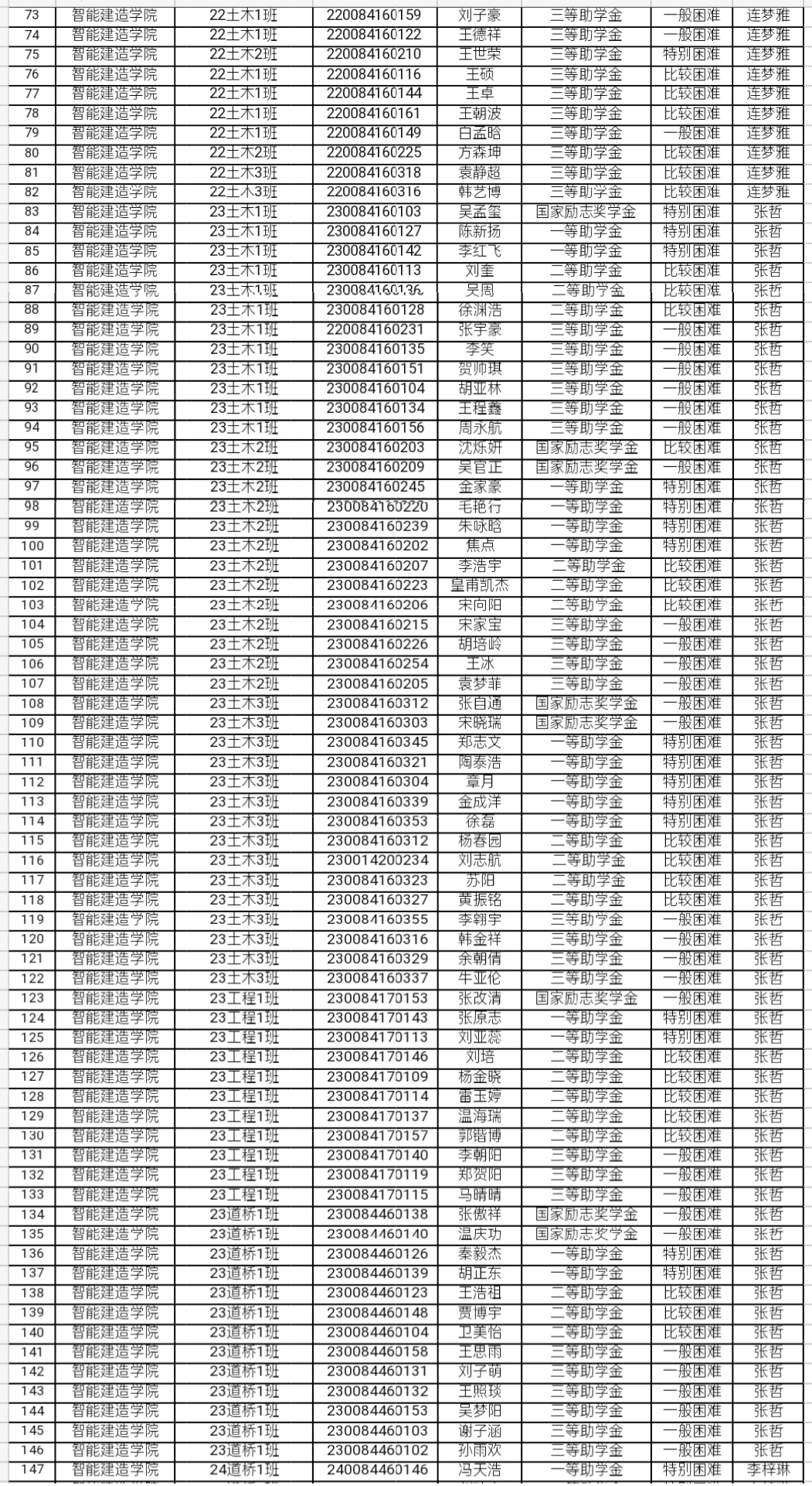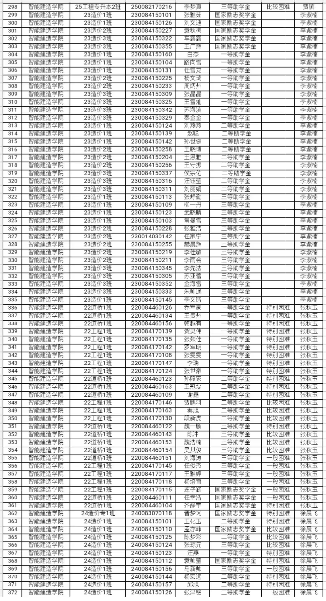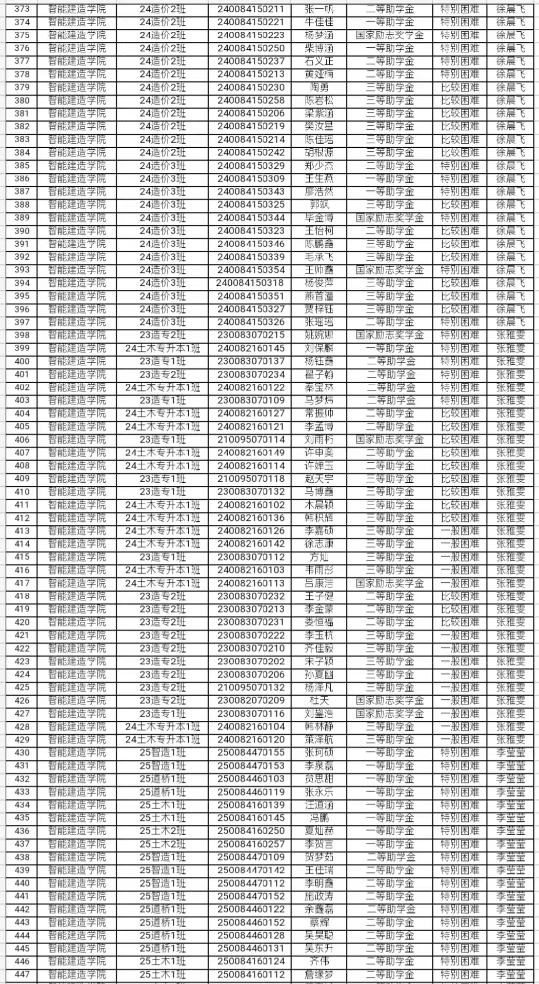 关于国家奖助学金评定工作评议小组名单的公示