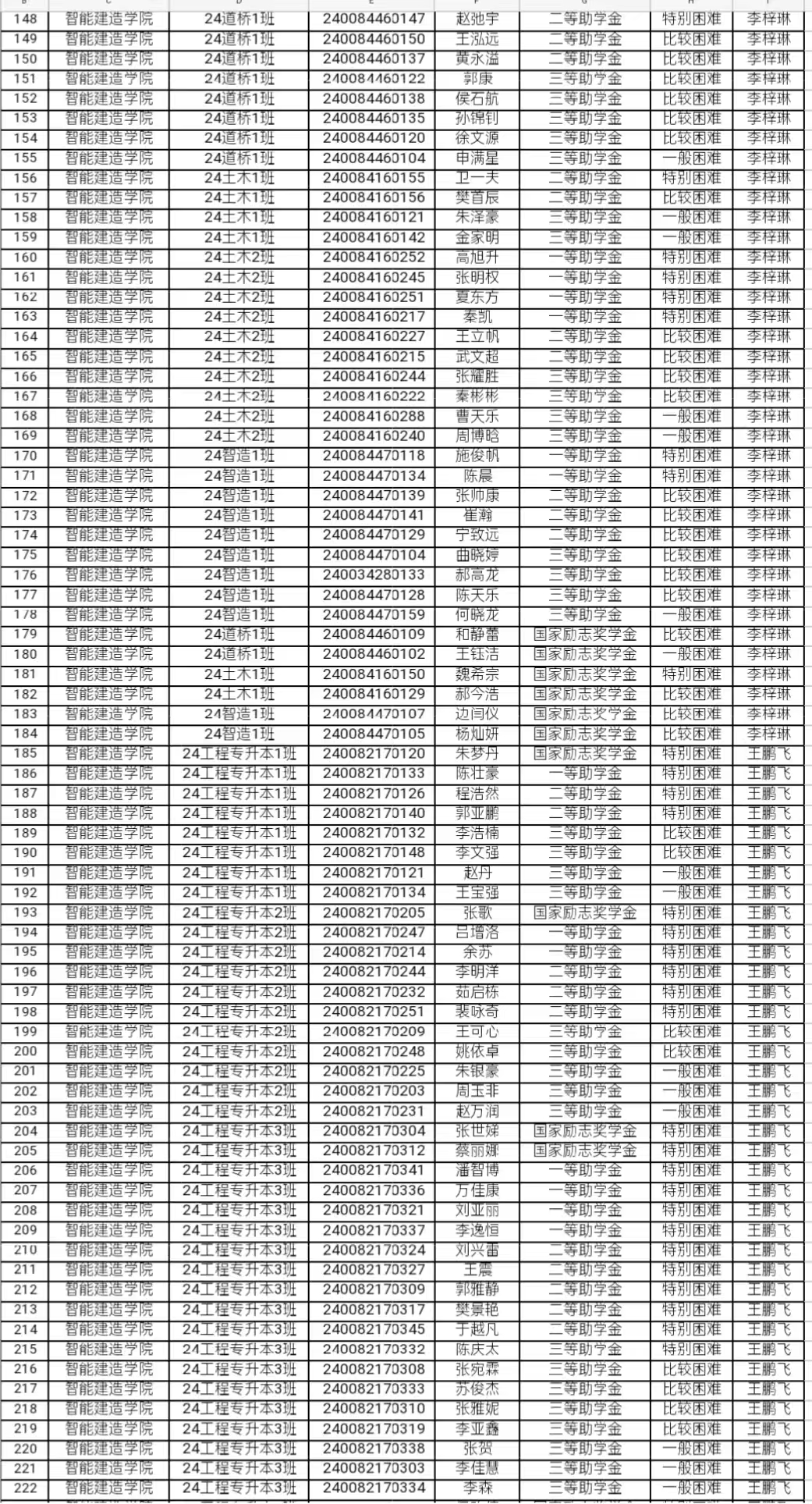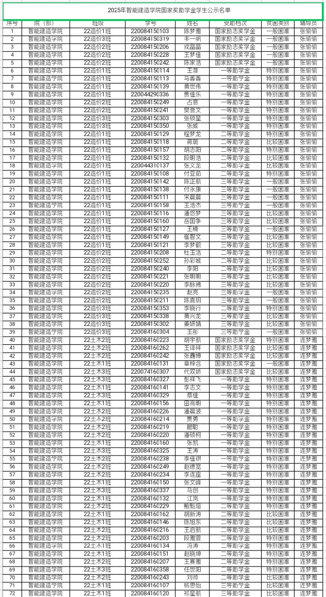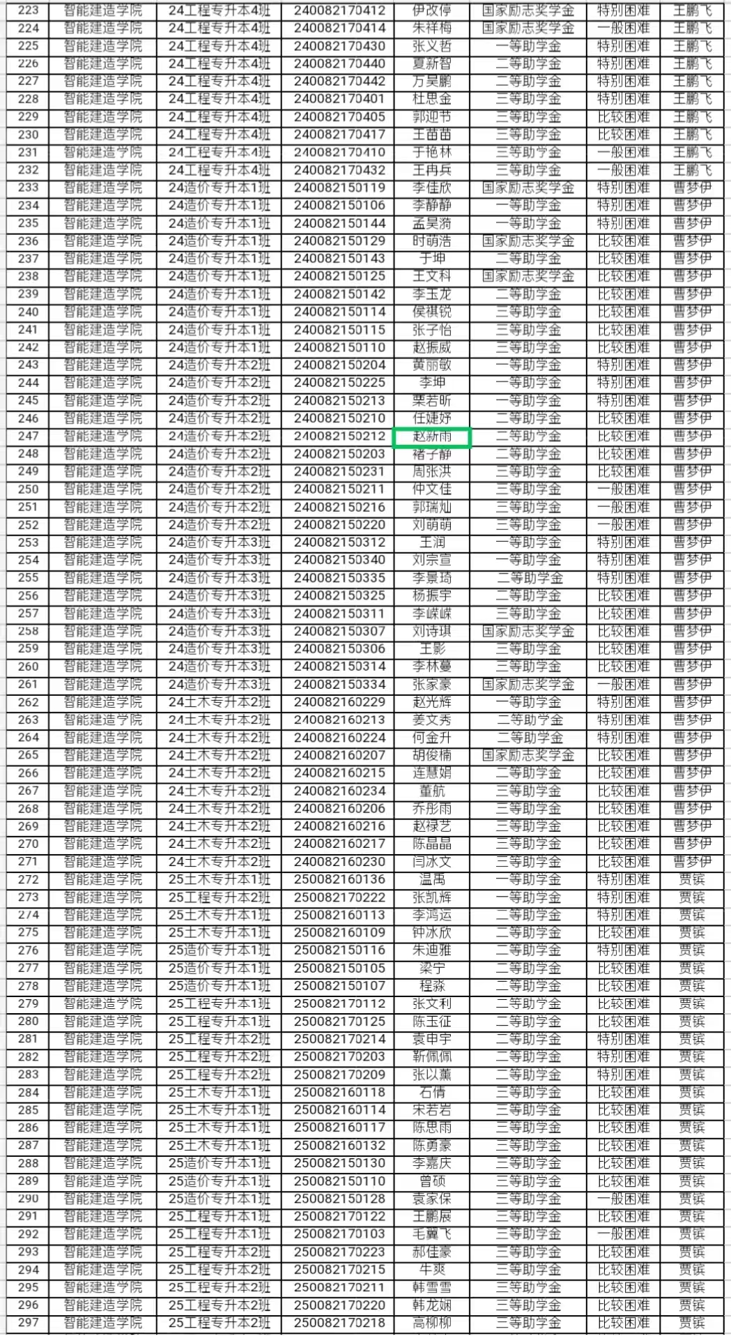 关于国家奖助学金评定工作评议小组名单的公示