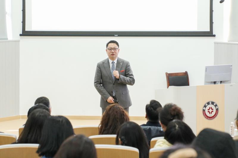 梁鹏副教授作《数字贸易人才“学-做-用”一体化培养的“企业驻校”实践与探索》主题报告