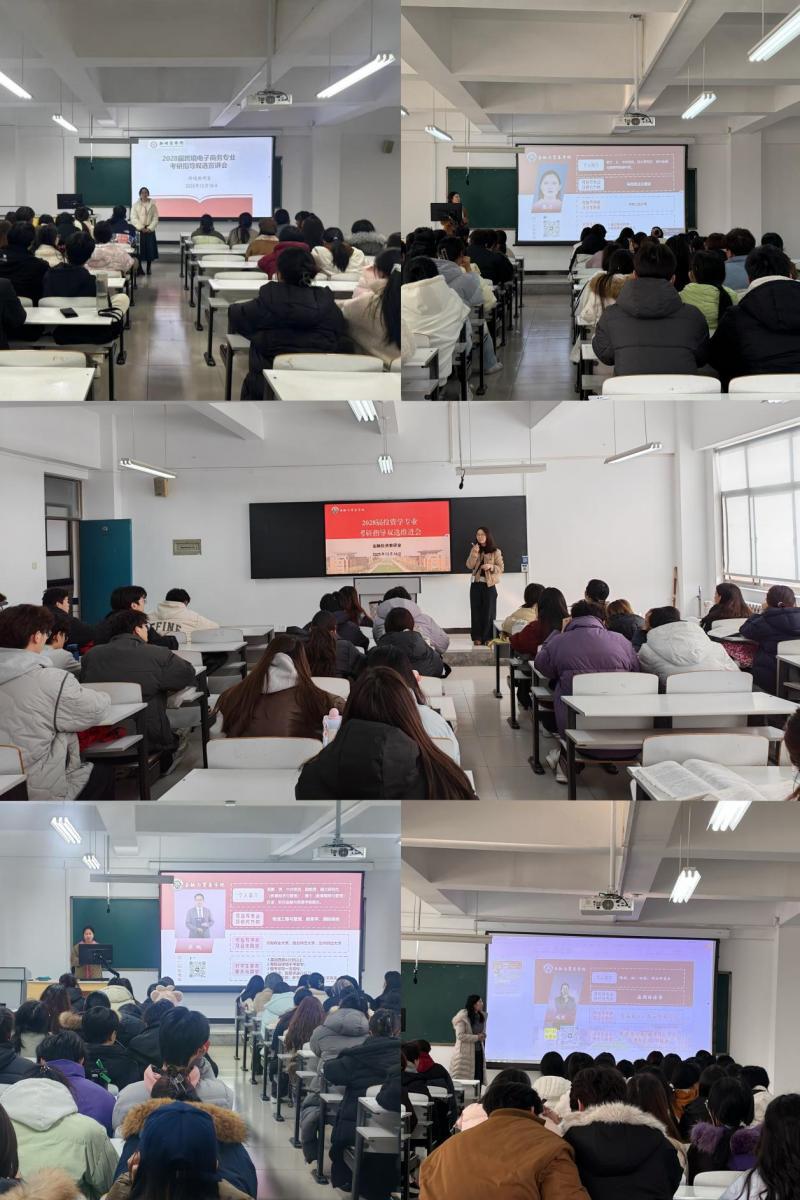 与此同时,我院各教研室开展考研双选宣讲会,介绍专业考研情况并发布各专业所有考研指导老师的背景信息,包括个人简介、可指导专业及研究方向、可指导学校及合作院校、对学生基本要求与期望等,了解每位老师的可指导专业和优势后学生可与导师取得联系,进一步沟通与了解。会上,基于学生对考研双选的疑问,各专业老师进行详细解答。