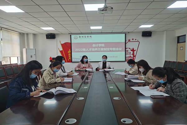 为全面贯彻党的教育方针政策,落实立德树人根本任务,根据社会发展的需求变化,依据教务处《关于2022级专业人才培养方案的指导意见》等系列文件,会计学院于2022年5月16日在广恩楼103会议室召开2022级人才培养方案制定专题会议。会计学院院长祝利芳、副院长刘金金、教学秘书耿玉伟及各位教研室主任参加会议,会议由刘金金副院长主持。
