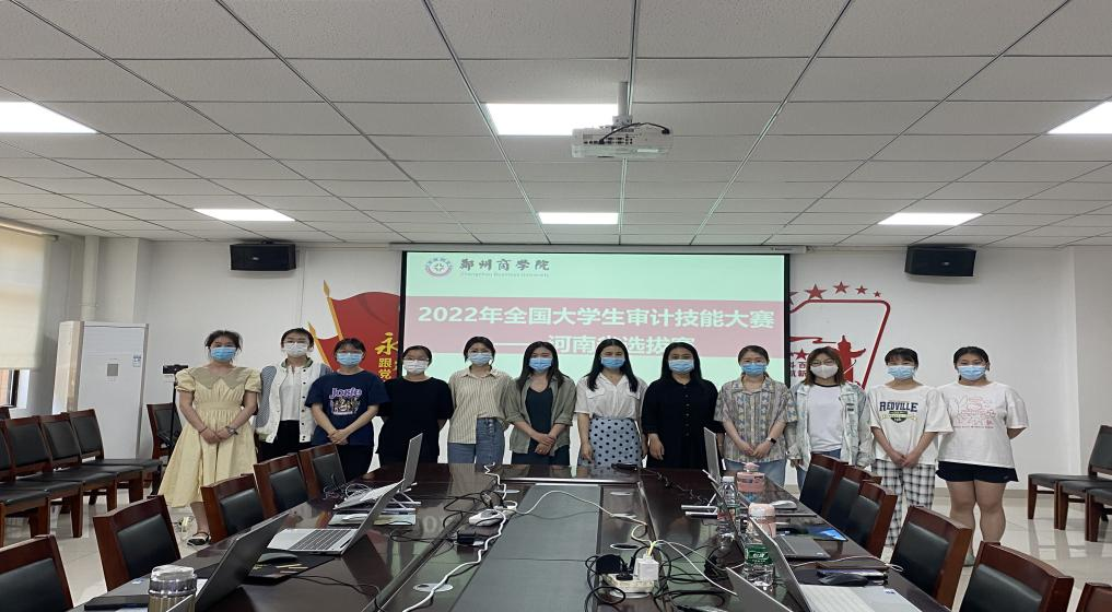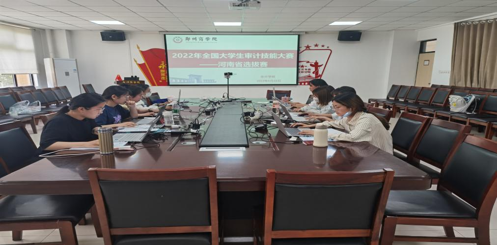 为全面贯彻pg电子官网“商科、应用型、国际化”人才培养特色,推动本科教育新文科建设。会计学院秉承“以赛促学、以赛践学、教赛结合”的育人理念,于5月22日组织19级、20级审计学专业8名同学组织两支参赛队伍,参加2022年全国大学生审计技能大赛河南省选拔赛,郝晨君老师、赵明雨老师、翟文佼老师和兰洁老师作为专业指导老师带队比赛。