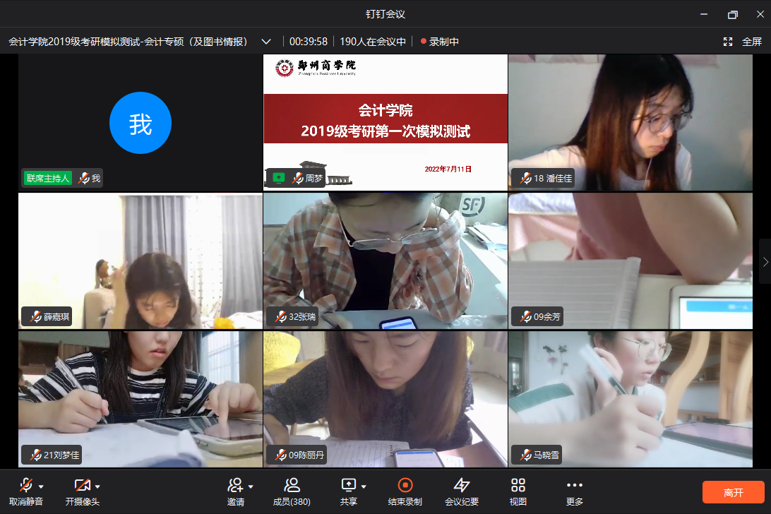 为进一步落实pg电子官网本科分层分类教学工作要求,提升学生考研备考质量,依据《会计学院考研主题教育指导方案》,2022年7月11日,会计学院在线上举行2019级第一次考研模拟测试,共303名学子参加此次模拟考试。