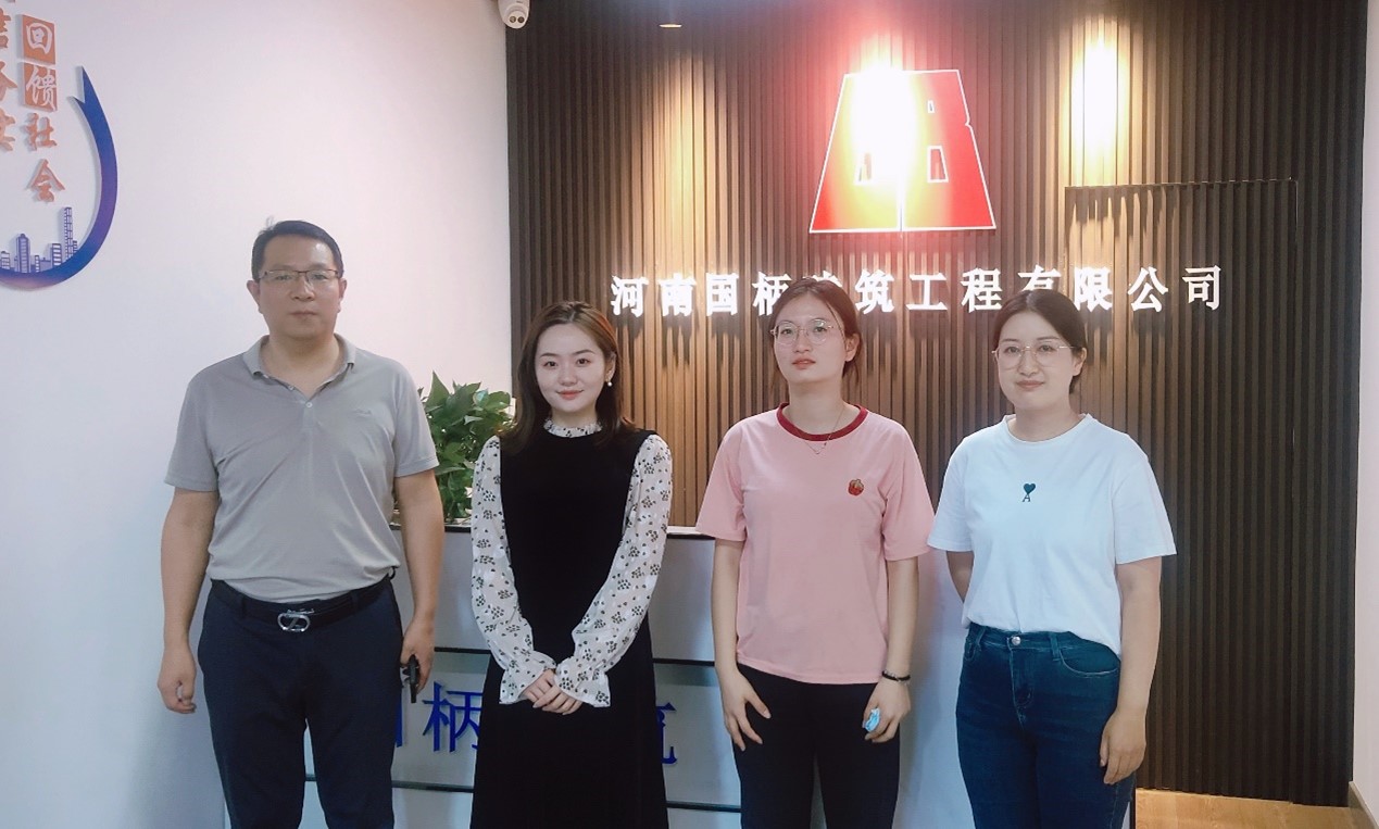 为切实做好2023届毕业生毕业实习工作,打造优质实习实训和就业基地,促进学生实现高质量就业,9月30日上午,我院实习实训指导教师李璨、辅导员康晨茜一行深入河南国柄建筑工程有限公司考察探望实习学生。