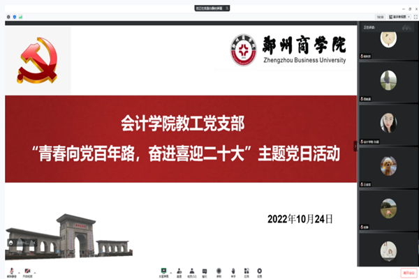 为深入学习领会和全面贯彻党的二十大精神,2022年10月24日,我院教工党支部举办青春向党百年路,奋进喜迎党的二十大主题党日活动,集体学习和讨论习近平总书记在中国共产党第二十次全国代表大会上的报告,本次活动由我院教工党支部书记白静主持,我院教工党支部全体党员参加。