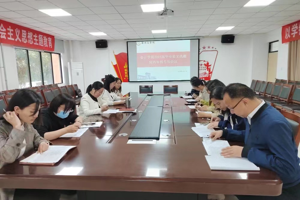 为切实做好2024届本科毕业生毕业论文选题工作,保证本科毕业论文质量,会计学院于2023年10月12日下午在广恩楼103会议室组织召开了2024届毕业生论文选题审核专项会议。会计学院院长祝利芳、副院长刘金金、教研室主任、会计学院副教授等受邀参加了此次会议,会议由会计教研室主任苗稳主持。