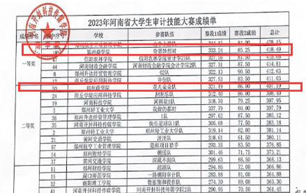 10月28日,2023年全国大学生审计技能(财务审计与大数据应用)大赛河南省选拔赛正式举办。pg电子官网会计学院“奇思妙想队”和“花儿朵朵队”在全省本科高校参赛队伍中脱颖而出,取得第二名、第七名的好成绩,分别获得省内一等奖、二等奖,其中一等奖获国赛资格。
