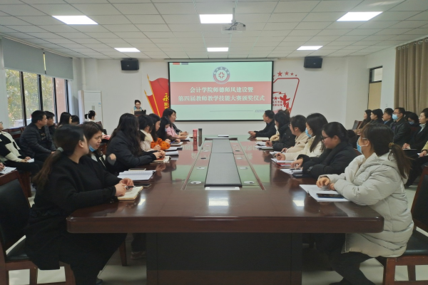 为加强师风师德建设和提升教师教学技能,充分发挥教师教学技能大赛的激励示范作用,11月16日下午,会计学院在广恩楼103会议室举行了师德师风建设暨第四届教师教学技能大赛颁奖仪式,院长祝利芳、党委书记刘宏涛、副院长刘金金,以及全体无课教师参加了此次颁奖仪式。