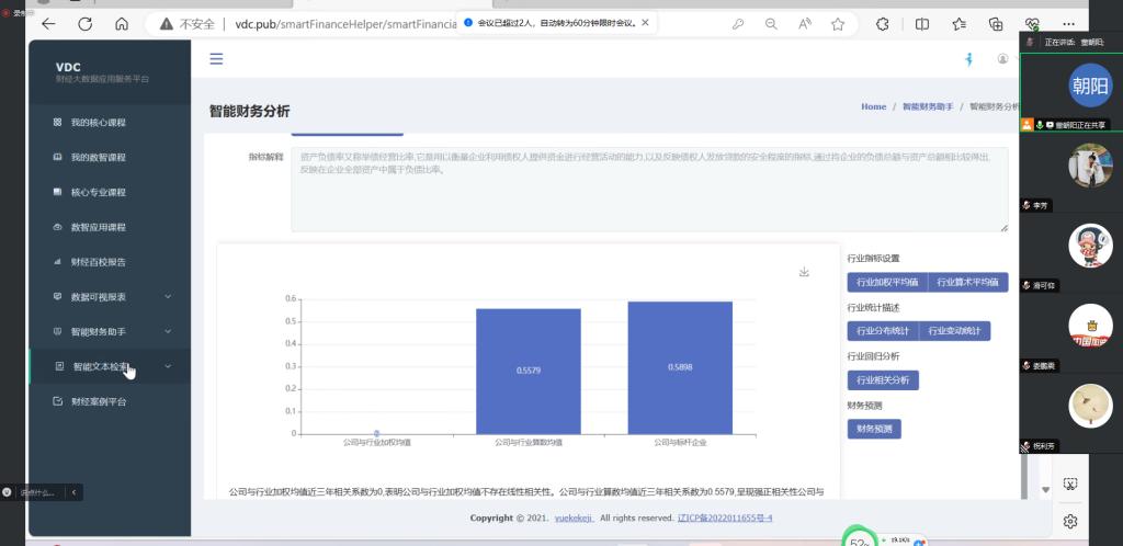 本次培训以线上+线下相结合的方式开展,共分为三个环节:首先董朝阳老师为参训教师详细介绍了VDC财经大数据应用服务平台的功能,该平台内含上千家上市公司的财务报表数据,不仅便于学生进行报表分析和财务指标分析,而且能够通过文本检索功能查找相关政策法规以及行业信息,培养学生数据分析的严谨性和客观性;其次,董老师就教师端和学生端操作注意事项进行阐述,教师端包括课时的分配、教学内容的设计、教学任务的发布、教学监控的方式等,学生端包括任务的领取、数据的关联方法等;最后,课程组成员根据董老师的讲解进行实践操作,并就遇到的问题及时与董老师进行沟通交流,董老师均给予一一解答。