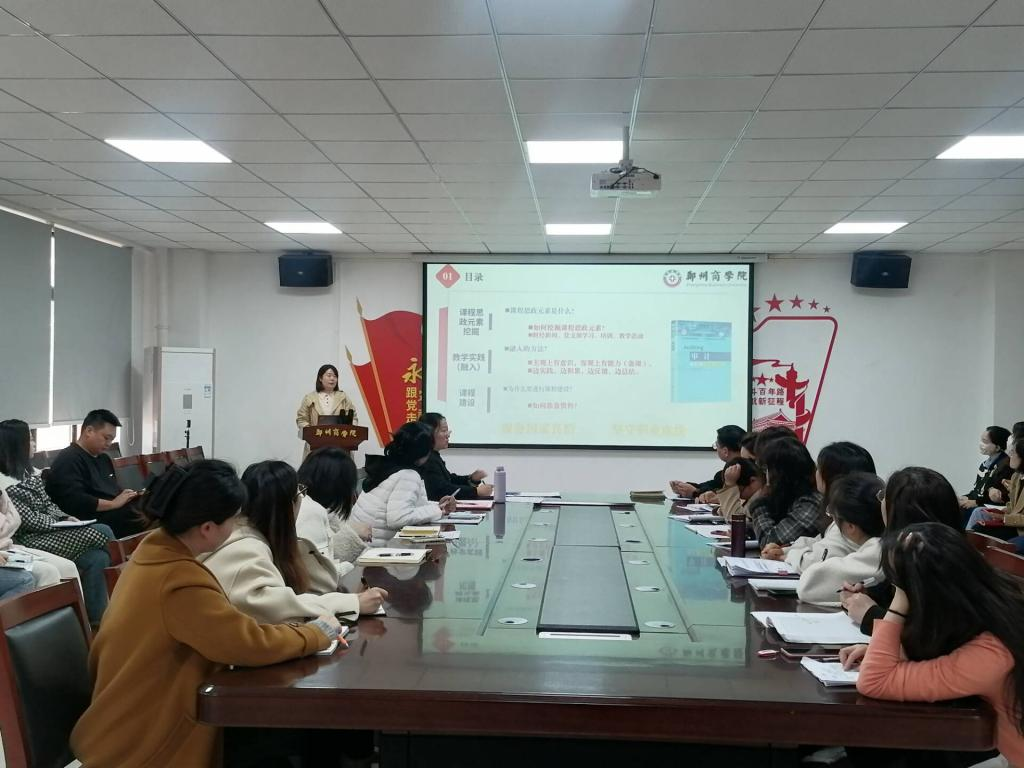3月14日下午,我院在103会议室召开了河南省本科高校课程思政样板课建设经验分享会。会上,刘金金副院长就“河南省本科高校课程思政样板课”建设经验进行分享交流,她以河南省课程思政样板课、河南省一流本科课程《审计学》为例,从课程思政元素的挖掘、教学实践的融入、课程建设的必要性以及课堂教学案例分享四个方面分享了课程思政样板课建设的实践经验。她指出:要根据课程的性质和内容明确思政目标,并结合时代背景,从日常教学生活中挖掘思政元素,不断优化课程思政内容,如财经新闻、党支部学习、各种培训、教学活动等;在融入教学实践方面,要创新教学方法,开展多种形式的课程思政研究与实践,鼓励学生积极参与、挖掘学生潜力。要“在主观上有意识,客观上有能力”、“边实践、边积累、边反馈、边总结”,进而提高育人水平,真正实现课程思政与专业教育的高效有机融合。