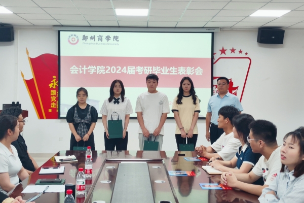 为表彰在考研道路上辛勤耕耘、成功上岸的优秀学子,并激励更多学生考研,2024年6月6日,会计学院在广恩楼103会议室隆重举行了“考研学子圆梦表彰大会”。会议由考研教研室汪艳老师主持,会计学院院长祝利芳、党委书记刘宏涛、副院长刘金金及考研教研室主任武佳莉、2024届毕业班辅导员代表以及2024届考研成功学子共同参加。