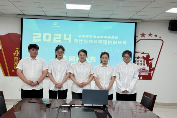 2024年6月16日,由中国国际贸易促进委员会商业行业委员会、中国国际商会商业行业商会、中国商业经济学会共同主办的2024 年全国高校商业精英挑战赛会计与商业管理案例竞赛全国总决赛圆满落幕。我院由段培鸽、曹琦与景世中老师指导的本科组“勇创佳绩”(成员:罗心悦、罗秋雨、王凯乐、杨文哲、宋恺楠)和“答案在明天”(成员:石泉灵、王洒、田明月、徐庭欣、张森鹏)代表队均荣获全国总决赛一等奖,其中“答案在明天”代表队以小组第一名,成功晋级全国总决赛精英赛。
