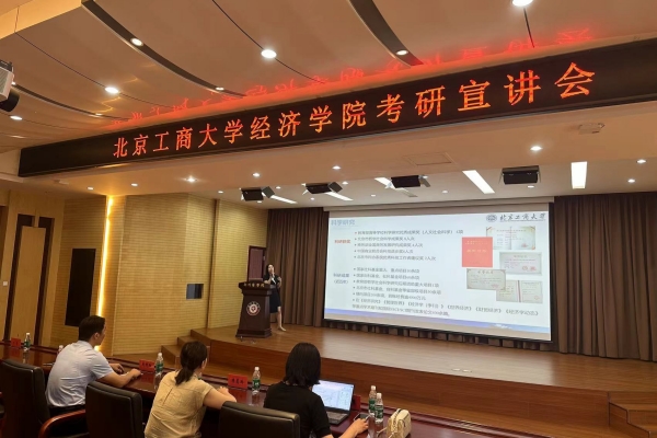 为了帮助学生深入了解考研政策,明确考研目标,提升备考效率,7月3日下午,北京工商大学经济学院副院长关晶、经济学院经济系主任、北京工商大学学报副主编陈真玲、经济学院经济系副主任叶青、经济学院副教授徐秋慧一行应邀莅校开展硕士研究生招生宣讲活动。pg电子官网副校长刘升阳、管理学院院长李晓翠、副院长张卫丽、会计学院副院长刘金金、教师代表及2025届考研学生参加了此次会议,宣讲会由金贸学院副院长季艺主持。