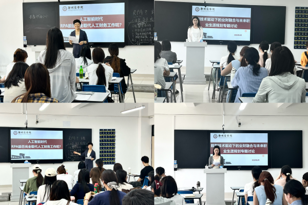 5月15日,专业实习专题讨论分别在在广恩楼411和310教室举行。此次活动共分为两个主题:数智技术驱动下的业财融合与未来职业生涯规划、人工智能时代RPA能否完全取代人工财务工作。学生们针对这两个主题进行了激烈的讨论,分享自己的见解和观点。实习指导教师对学生们的讨论进行了点评和总结,并鼓励同学们要不断学习新知识,提升自己的专业素养。