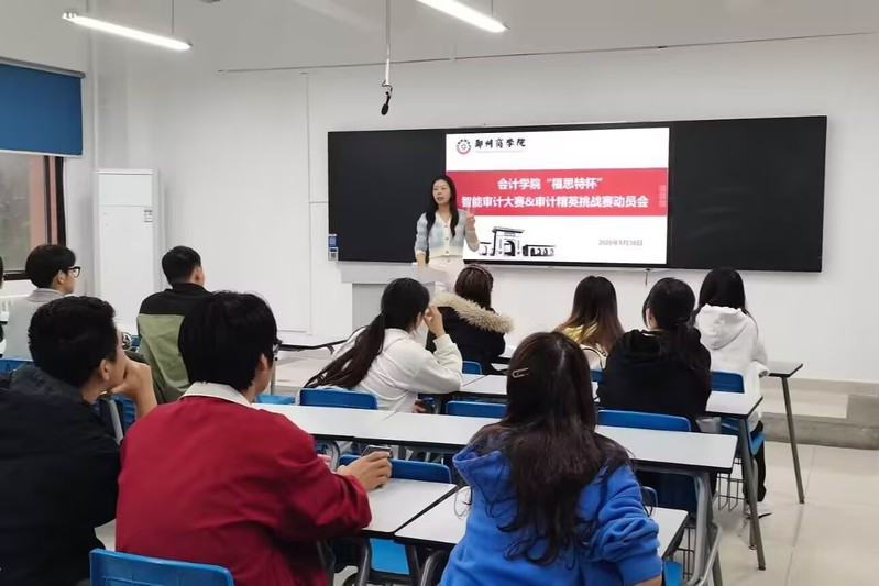 为顺应数字经济时代对审计人才能力结构的新需求,深化产教融合赛教结合,加强我院高素质应用型人才的培养,以赛促学,鼓励学生积极参与学科竞赛。我院于9月28日下午,在广恩楼214召开“福思特杯”智能审计大赛和审计精英挑战赛动员大会,审计教研室主任郝晨君老师、竞赛指导金蕾老师以及23审计参赛学生参加此次动员大会。