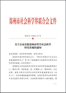 2020年9月入选首批郑州市哲学社会科学研究基地