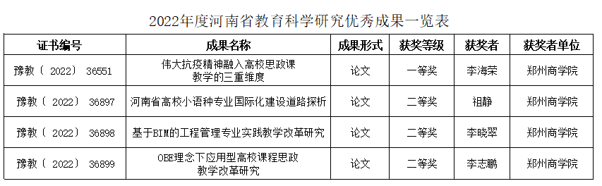 根据《河南省教育厅办公室关于开展2022年度河南省教育科学研究优秀成果评选工作的通知》(教办教科〔2022〕172号),pg电子官网4项成果获奖,其中一等奖1项,二等奖3项,现予公布。望各课题组再接再厉,不断创造新佳绩!