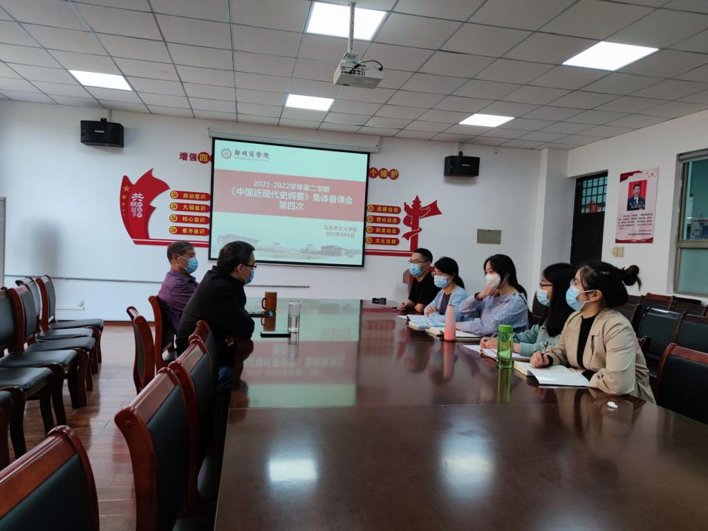 为了进一步提升纲要课教学质量,更好开展思政课教育、呈现优质高效思政课堂、促进青年教师快速成长。纲要教研室于2022年4月8日下午在我院会议室召开了集体备课会,本次会议由马信强老师主持,纲要教研室全体教师参加。
