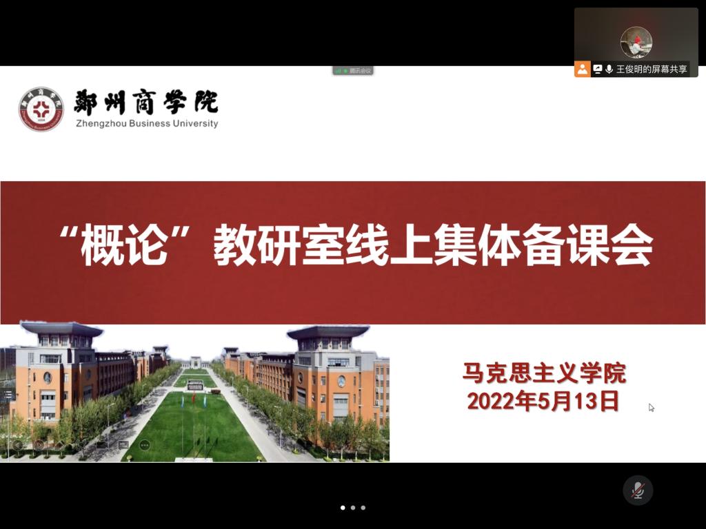 为贯彻落实思政课集体备课制度,切实通过集体备课提升思政课教师教学水平和教学能力,保障思政课教学质量,5月13日下午,我院概论教研室通过腾讯会议,组织召开了线上集体备课会。本次会议由王俊明老师主持,教研室全体教师参加。
