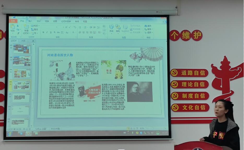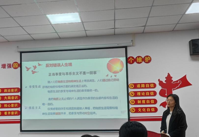 首先,三位青年老师依次进行说课。常小徽老师以当前社会现象和热点新闻作为导入,围绕着定义、实质、危害以及怎么做的逻辑结构分别对拜金主义、享乐主义和极端个人主义进行剖析,帮助学生辨析错误的人生观。潘婷老师通过视频《觉醒年代》引入授课内容,分别从理想信念的概念、特征及关系入手引导学生树立正确的理想信念。李亚林老师通过课前新闻播报,以中国传统文化作为切入点,引出中国精神,并结合《只有河南》和红旗渠的故事分别对中国精神的来源和内涵进行讲授。