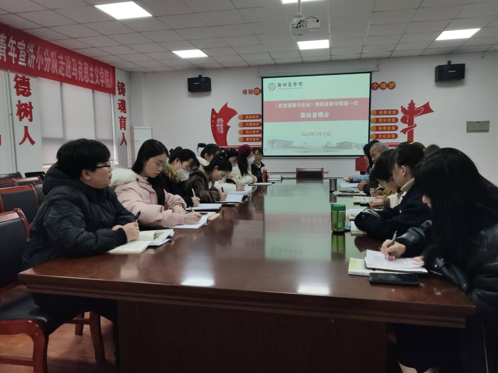为明确本学期德法课教学目标和规划,进一步提升德法教研室教师教学能力,2月10日上午,德法教研室在我院会议室召开召开期初集体备课会。本次会议由教研室主任杨丽丽主持,教研室全体教师参会。