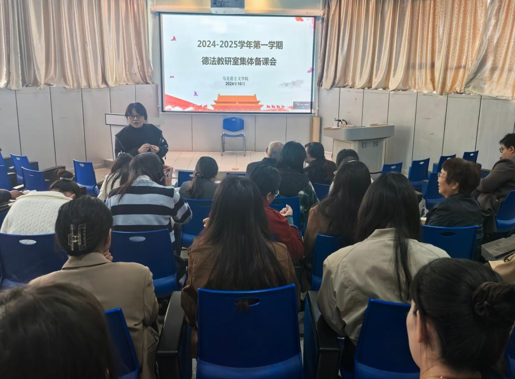 为进一步提升思政课教育教学质量和教师的政治素养,更好地落实立德树人根本任务,10月29日上午,德法教研室在1号楼开展了集体备课会。会议由教研室主任杨丽丽老师主持,教研室全体教师参加。