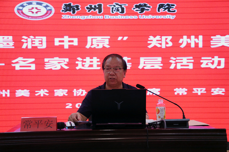 活动核心环节,郑州市美术家协会副主席常平安以《AI浪潮冲击下的中国文化自信》为题,带来了一场兼具思想深度与美育温度的专题讲座。在人工智能快速发展的当下,常平安围绕 “如何坚守中国文化根脉、弘扬文化自信” 这一核心,从美育视角深入剖析:他指出,AI技术虽为艺术创作提供了新工具,但中国传统美术书法中蕴含的人文精神、审美意境与文化底蕴,是人工智能无法替代的独特美育资源。讲座中,他结合大量传统书画经典案例,引导师生感受笔墨间的东方美学魅力,让大家深刻认识到,在AI浪潮中坚守中国文化特色,不仅是文化自信的体现,更是当代美育的重要方向 —— 唯有扎根文化沃土,才能在艺术创作中传递出有温度、有灵魂的审美价值。同时,常平安还为师生们提供了切实的美育实践思路:面对AI带来的挑战与机遇,学生可将传统书画的笔墨意趣、构图章法、文化符号融入创作,让中国文化元素在新时代艺术表达中焕发新生,这也为艺术专业学生的学习与实践拓展了美育新视角。