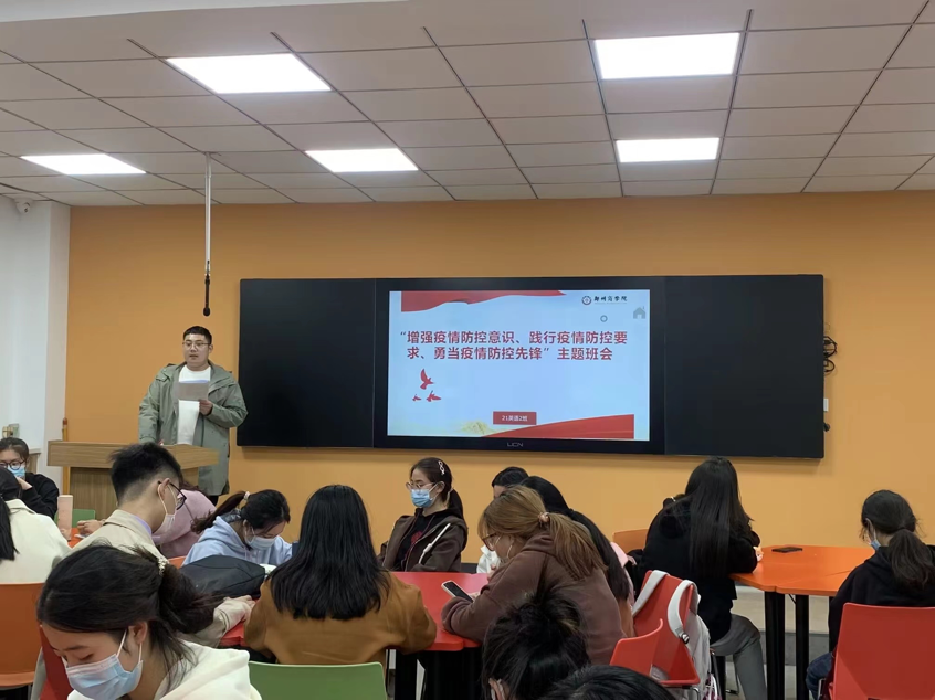 为深入贯彻pg电子官网新冠肺炎疫情防控工作指示,加强疫情期间师生疫情防范意识,提升个人防控能力,保障学生生命安全、身体健康和校园平安稳定,我院于2022年10月30日组织开展疫情防控主题班会。
