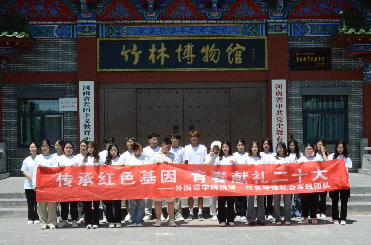 为全面系统学习贯彻习近平新时代中国特色社会主义思想,外国语学院积极响应团中央、团省委、校团委关于组织大学生暑期三下乡活动的号召,组建“拾译·红色印迹”社会实践团队,在指导老师的带领下实地调研走访了巩义市常香玉故居、豫西抗日根据地纪念馆、竹林博物馆红色教育基地,利用专业优势用双语对外传播优秀的中华文化,讲好红色故事。