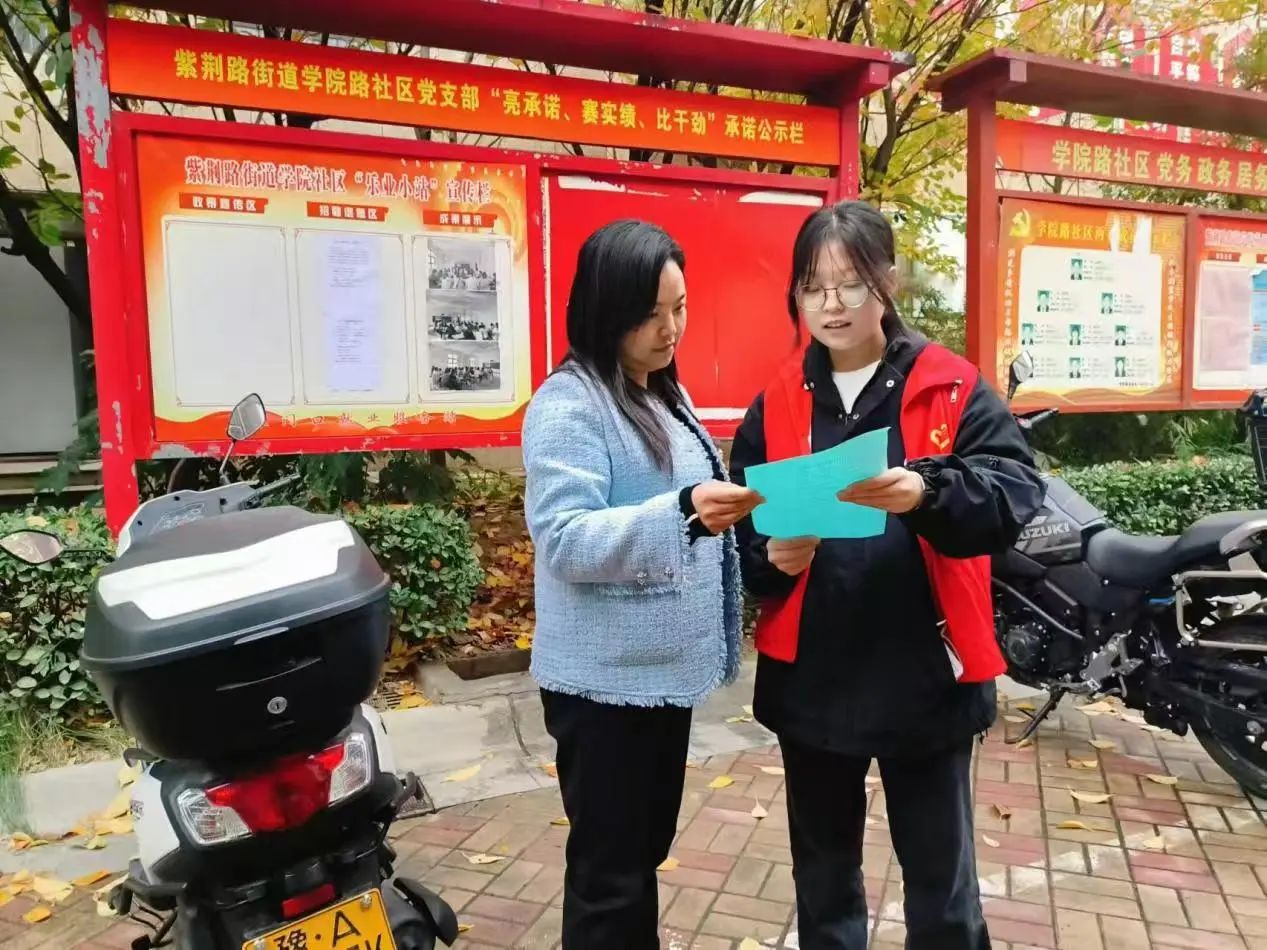 活动伊始,志愿者们在外语楼前集合拍照,并由负责人统一带领前往学院路社区。随后,志愿者向社区居民展示了近期“神舟十九号”成功发射的图片,讲述了本年度我国在科研领域取得的部分创新成果。接着,志愿者们手拿资料向社区居民科普科技创新相关知识,使他们更深层次的了解国家科技发展,激发出社区居民对现代科技的关注,营造全民崇尚科学、热爱创新的浓郁氛围。活动最后,志愿者们和社区居民纷纷表示受益匪浅,在本次活动中不仅掌握了相关科技知识,还深切领悟到科学技术对推动社会发展的重要作用。在志愿者们的努力和社区居民的配合下,活动顺利完成。