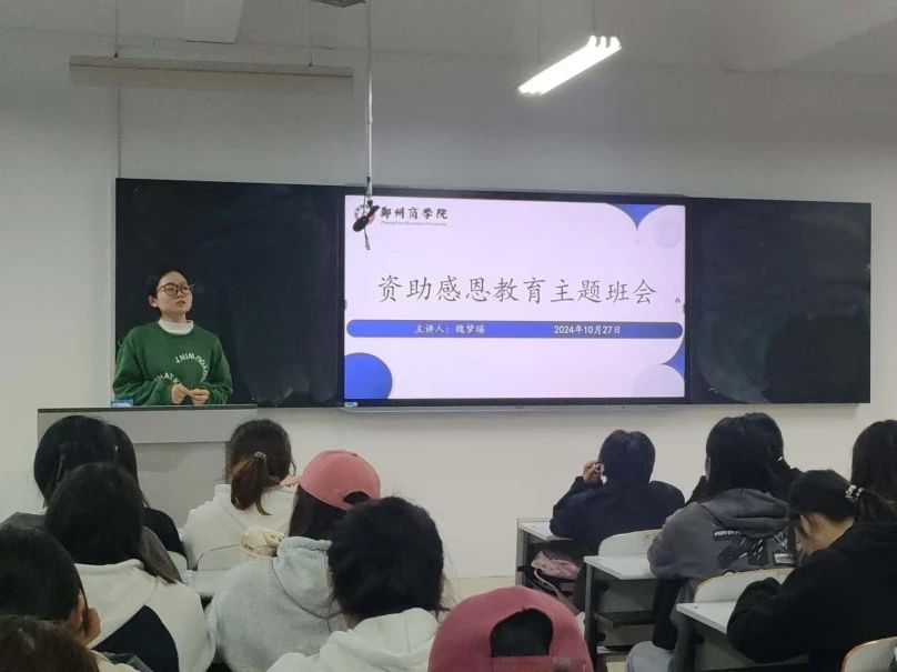各班级以“感恩”为主线,内容涵盖“感恩父母,相敬相爱”、“感恩老师,相伴相携”、“感恩同学,相知相助”、“感恩国家,相依相守”等环节。引导学生树立感恩、报恩的崇高美德,培养学生的感恩情怀,将感恩内化于心外化于行。班会中宣讲学校各类资助政策;班级获得国家助学金、国家励志奖学金的学生,分享自己在校的学习、生活与收获、感悟;班级其他同学也交流讨论身边发生的诚信、感恩故事。
