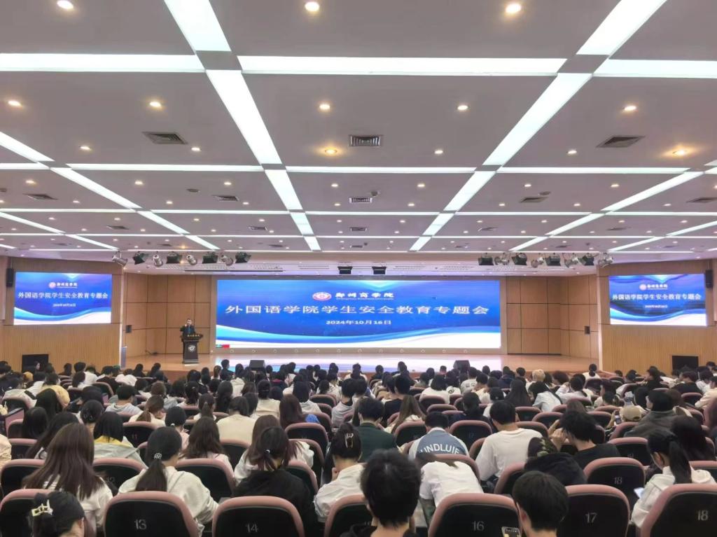 为持续深入的提升学生的安全意识和自我保护能力,切实维护全体学生生命财产安全,外国语学院于10月16日晚上在图书馆一楼报告厅举行了学生安全教育专题讲座。我院党委书记王克志、团委书记王子浩、宿管科科长贺萌,外语学院全体辅导员及全体宿舍长参加了此次讲座。
