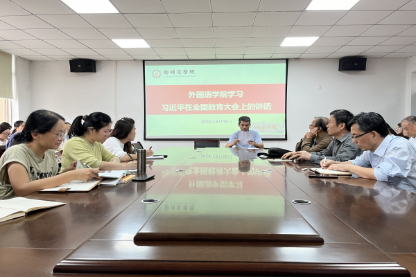 为深入学习贯彻习近平总书记在全国教育大会上的讲话精神,充分研究审核评估理念和政策导向,9月19日下午,外语学院在W209召开第三周政治学习会议,外语学院党委书记王克志及全体教职工参加会议,会议由王书记主持。