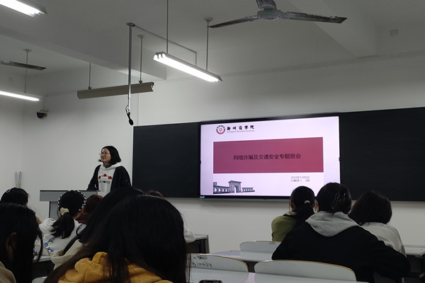 为进一步遏制网络诈骗向校园渗透,加强对学生法治与交通安全的教育与管理,进一步引导学生增强安全防范意识和安全防护能力。11月5日下午,我院于外语楼召开了“防网络诈骗,学交通安全”主题班会。