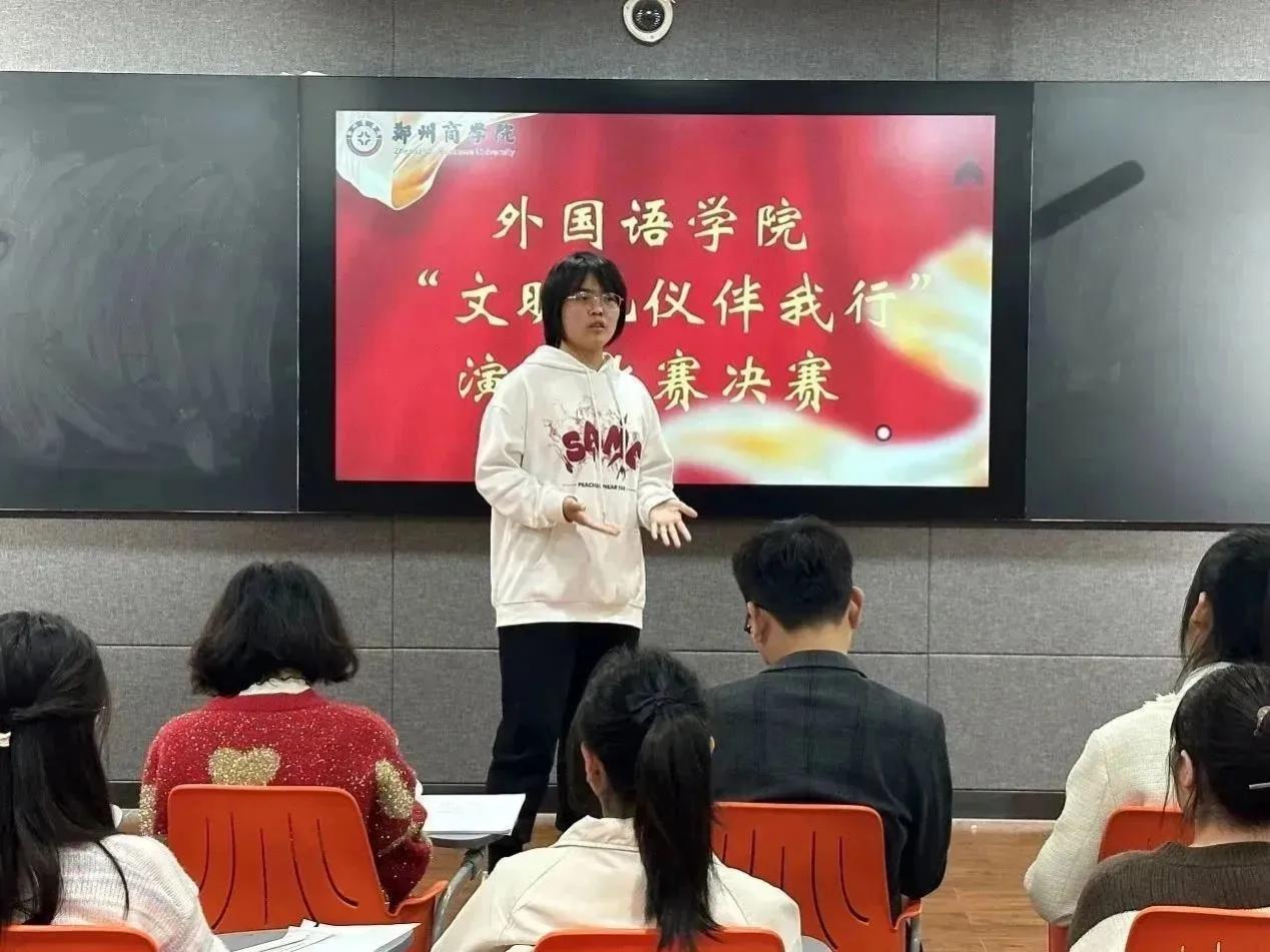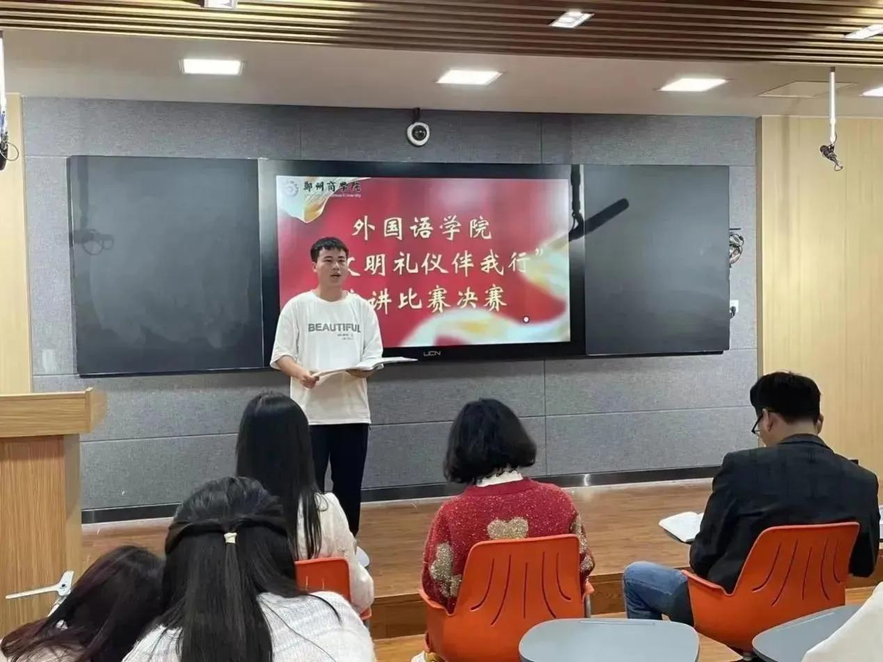 在决赛中,主持人向在场人员热情介绍了各位评委老师,并宣布演讲比赛正式开始。参赛选手都自信且富有激情,结合专业特色用外语讲述身边的礼仪,通过中外双语展示优秀礼仪文化。他们用自己优美的音色、抑扬顿挫的语调和流利的外语向评委老师展示了自己对文明赛后,评委老师们一一对选手们的表现进行了点评和总结,并给予评价和指导,选手们纷纷表示受益良多。