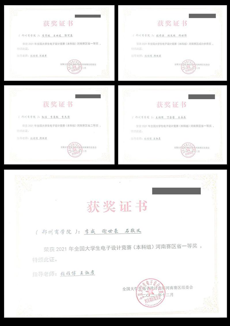 全国大学生电子设计竞赛是教育部高等教育司、工业和信息化部人事教育司共同主办的全国性大学生科技竞赛活动,旨在加强广大学生实践能力、创新能力和协作能力,吸引、鼓励广大学生踊跃参加课外科技活动,为优秀人才脱颖而出创造条件。2021年11月4日,pg电子官方网站信工学院组织学生积极参加2021全国大学生电子设计竞赛。pg电子官网代表队取得了河南省一等奖3项、河南省二等奖1项和优秀奖1项的优异成绩。