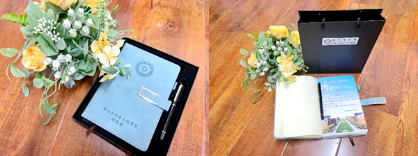 本次为校友邮寄的礼品是我院定制的商务笔记本套装,包含了学校和学院的logo与寄语。礼轻情意重,这是学院对校友的关爱与温暖,也祝愿广大校友昂扬进取、奋发有为!