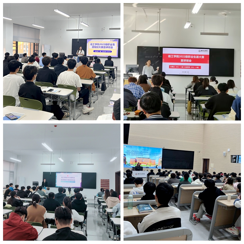 为使学生个人对未来职业走向和职业发展有更清晰地认识,提高学生的综合素质,避免学习的盲目性和被动性,帮助同学们明晰自己的职业目标和实施策略,更好地实现人生的价值和意义。我院2022级本学期以“做好职业规划 赢取美好未来”为主题举办大学生职业生涯规划大赛。为了确保活动有效地推进,11月1日-11月6日,2022级各班级组织召开职业生化规划大赛宣讲动员会,鼓励并发动2022级学生积极参加比赛。