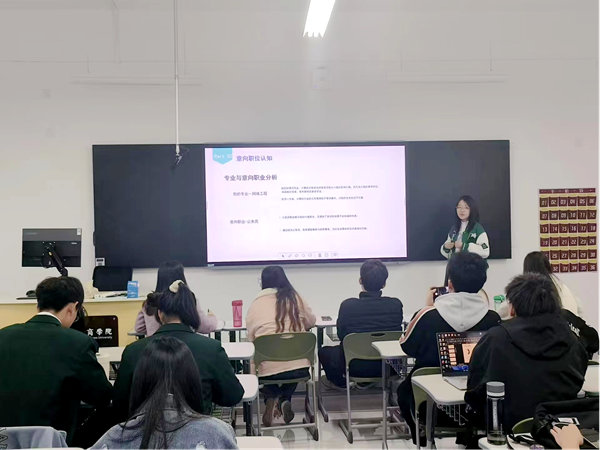 比赛开始,25位同学通过PPT进行逐一演示,深刻地阐述了自己对于未来职业规划的分析,他们从自身性格、专业、兴趣、以及专业测试等各方面分析自身的潜在优势,为往后的职业规划有更全面更科学的规划。比赛过程中,选手们落落大方,展示了对自身未来职业的畅想,此次比赛让同学们更好地了解职业规划同时也促使同学们深刻的体会到做好求职准备的重要性。