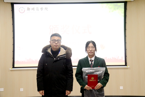 吕经理为一等奖获奖同学颁奖