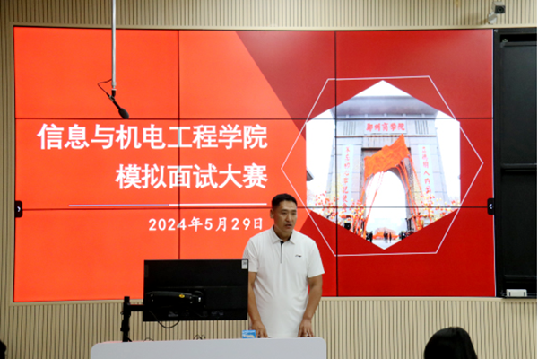 为全面贯彻落实学校的就业指导工作,促进学生就业,加强面试技能培训,深入了解就业市场和企业需求,提升学生的就业竞争力和就业能力,信工学院于2024年5月29日在JT102教室成功举办第二届模拟面试大赛。出席本次比赛的嘉宾及评委有:信工学院党委书记周余,河南奇酷网络工程有限公司运营总监李志涛、经理马幸杰,信工学院党委组织委员杨瑞瑞,信工学院辅导员兼就业指导课老师孔颖、李红颖及21级辅导员老师和学生代表。