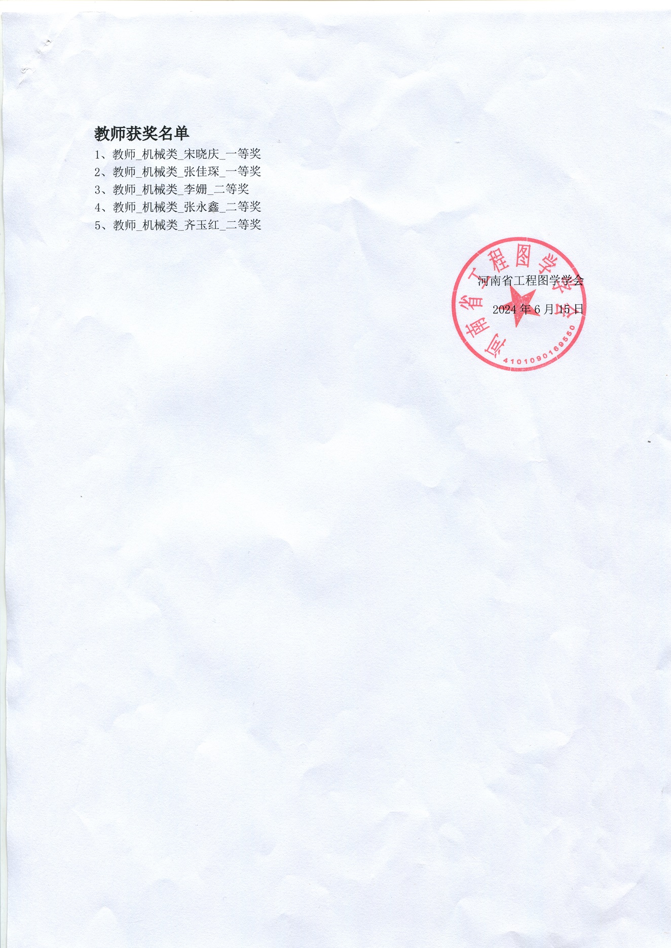 获奖名单