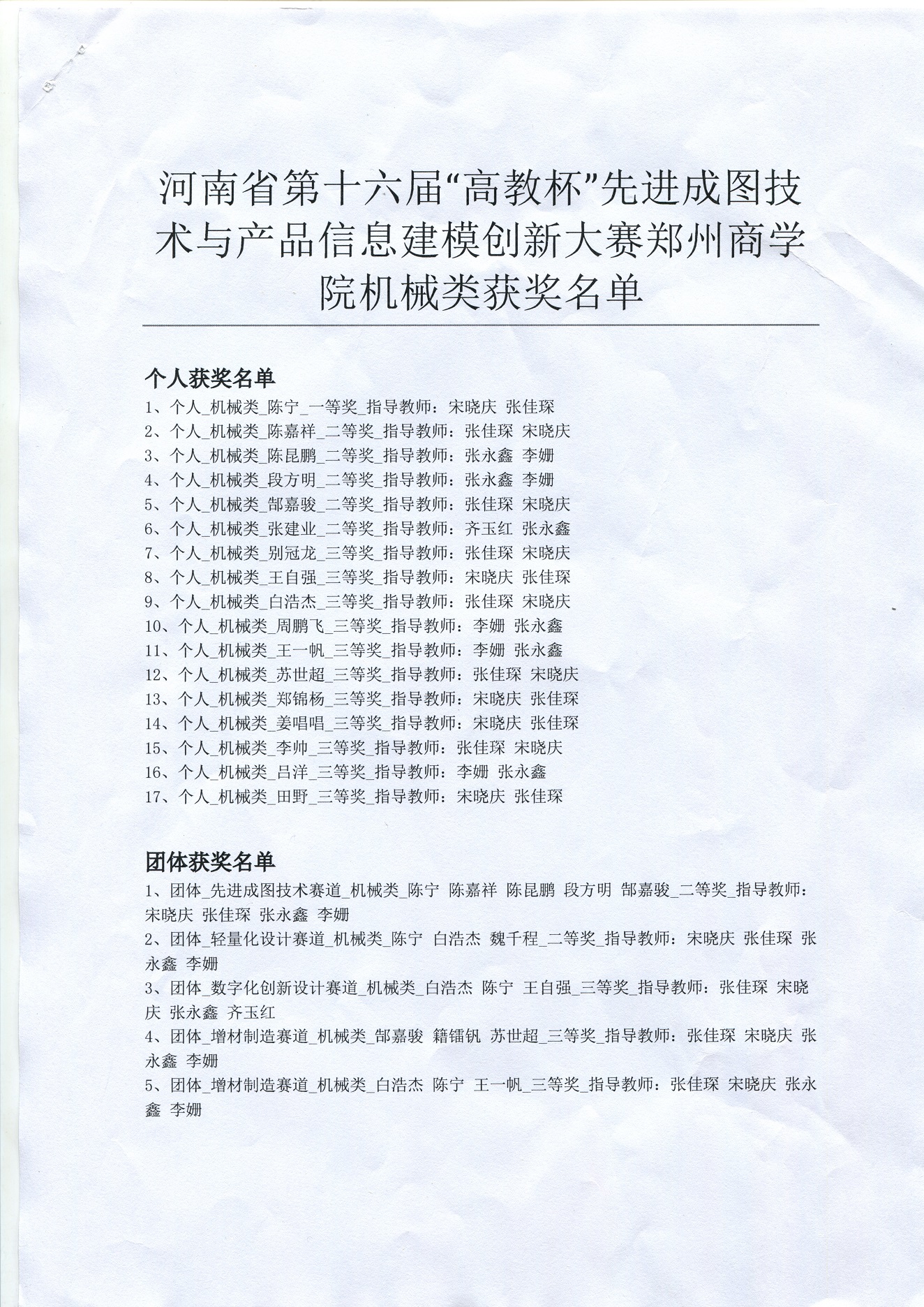 此次省赛经校级初赛选拔,信工学院共派出25名学生参与机械类比赛。经过激烈角逐,共17名同学荣获先进成图赛道个人全能奖,一等奖1名,二等奖5名,三等奖11名,其中参赛选手陈宁荣获个人全能一等奖,个人排名河南省第25。其他分赛道也有斩获,增材制造赛道团体二等奖,轻量化设计赛道团体三等奖,数字化创新赛道团体三等奖,pg电子官网荣获河南省机械类团体二等奖,成绩再创历史新高。