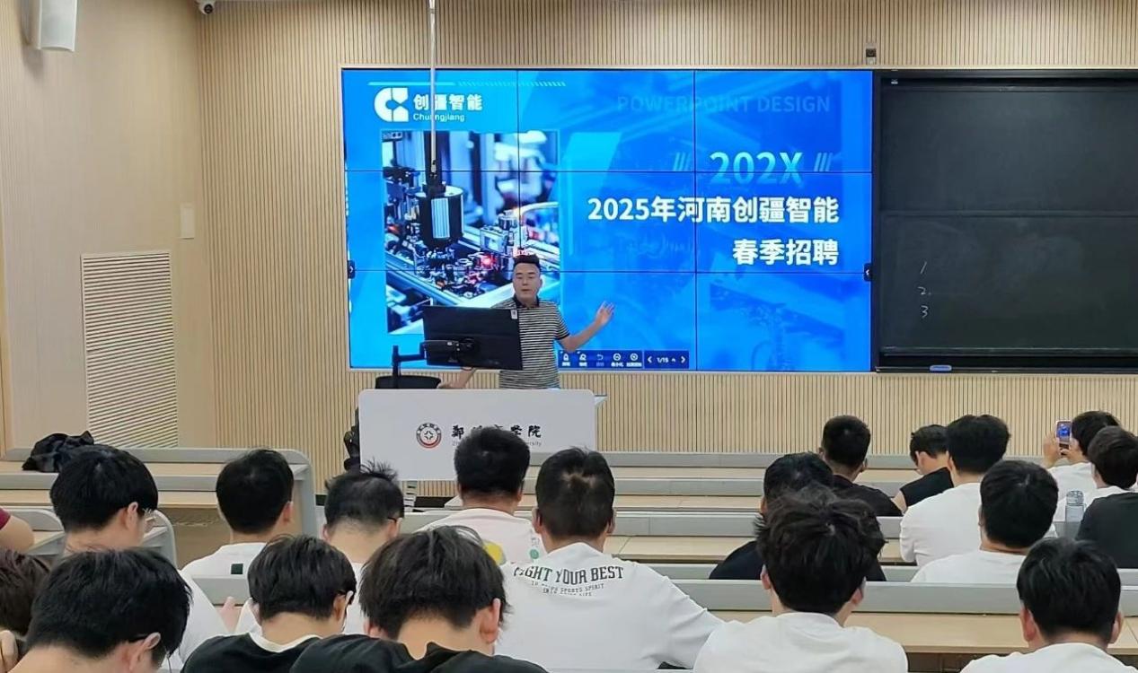 为助力2026届毕业生实习实训以及高质量就业,5月29日下午,河南创疆智能科技有限公司26届毕业生招聘宣讲会在机电学院躬行楼JT101顺利举行。公司招聘负责人楚勤昂携团队到场,围绕企业实力、实习岗位及成长路径展开详实讲解,为现场学子送上一场“专业适配、成长清晰”的职业指南。
