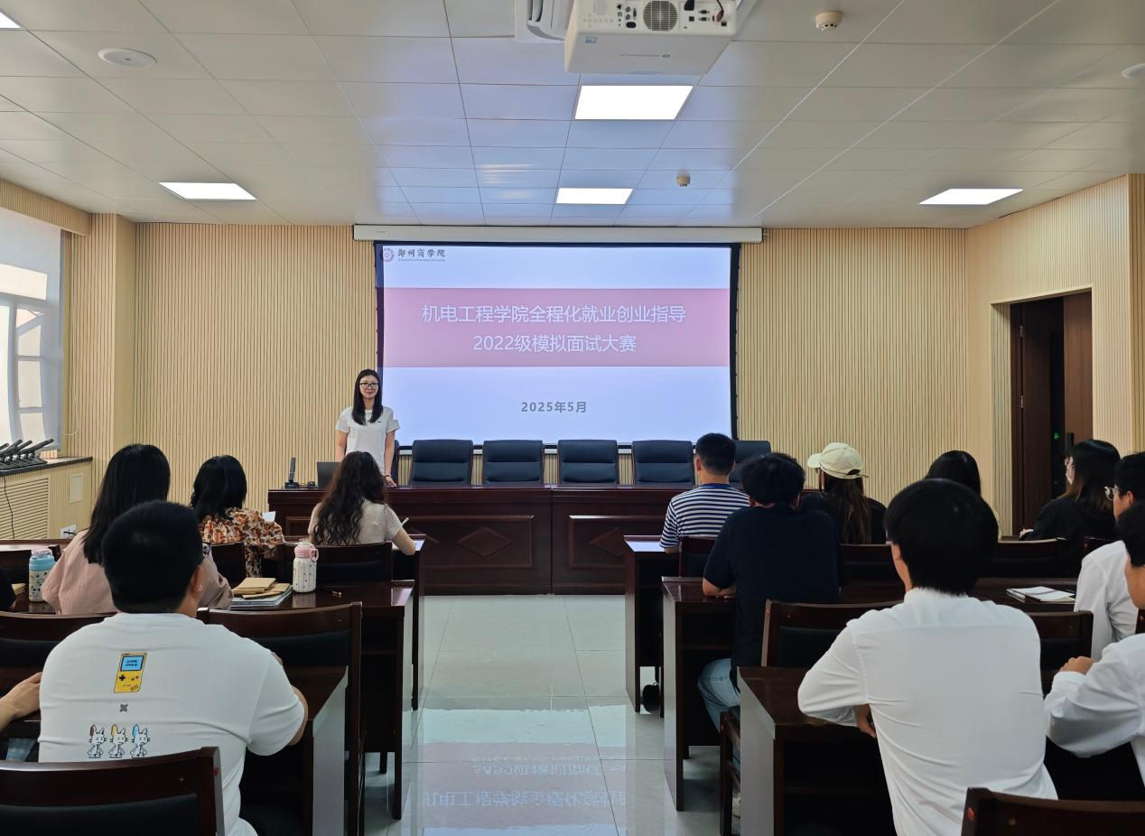 为深化全程化就业创业指导,帮助2022级学生提前适应职场竞争,提升求职实战能力,5月29日下午,机电工程学院在躬行楼B310大会议室举办“全程化就业创业指导——2022级模拟面试大赛(初赛)”。本次活动由学院辅导员组成评委团,通过简历初筛的学生同台竞技,为未来就业“预演”实战。