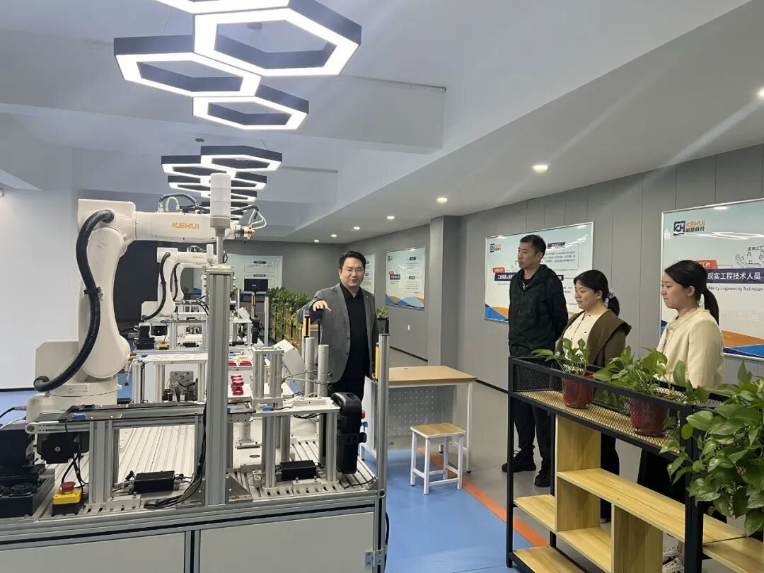 在此次活动中,两家企业负责人分别介绍了公司的发展战略、核心技术与人才需求规划。河南琪驭智能科技有限公司以技术服务为核心,经营范围包括智能制造装备研发生产、工业机器人与教学仪器制造销售、工业控制系统集成等,拥有专利5项、软件著作权2项及资质证书4个。其产品覆盖智能机器人、工业自动化设备及教育教学仪器,典型应用场景涉及智能电网、清洁能源发电等领域。河南科慕智能科技有限公司作为一家2021年成立的小微企业,专注于智能机器人研发与自动化解决方案,核心业务涵盖技术开发、设备销售及定制化车间改造。双方围绕“课程共建、技术共研、人才共育”的合作路径展开探讨,计划联合开发贴合行业需求的实训课程,搭建产学研一体化平台,推动教育链与产业链的深度融合。